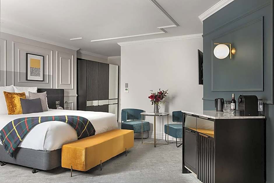Be enveloped in warm, classic luxury of our Superior king rooms inspired by the heritage of Scottish settlers. Superior king Rooms have a seating area with a work desk. Each room features a 49 inch Samsung Smart TV, a digital compendium and complimentary high speed WiFi. A selection of exquisite Pure Leaf Single Origin teas and a capsule coffee machine with a range of Coffex blends will refresh and revive. Our Marihi Aotearoa amenities combine iconic design with seductive fragrances and a social conscience. Our hotel is a proud member of the Weka plastic recycling program. Superior king Rooms have a seating area with a work desk.